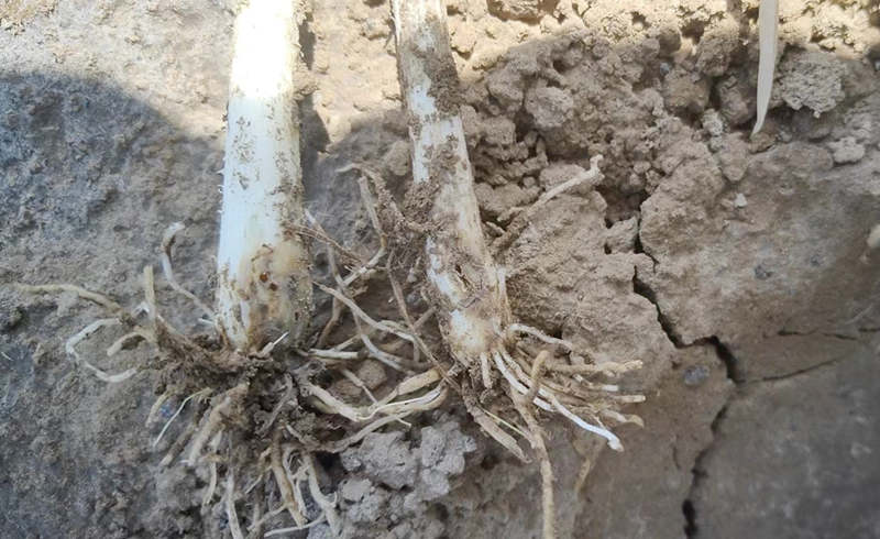 大蔥施肥量過多,會出現燒根問題,進而導致蔥根出現各種問題。